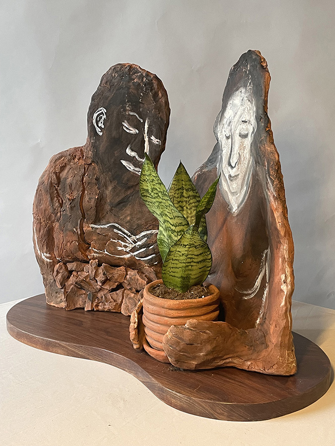 Keep Hope Alive, planter Mixed Media & BronzeKeep Hope Alive, planter202520 3/4" x 26" x 12"ceramic with oxide stains and oil paint on wood
